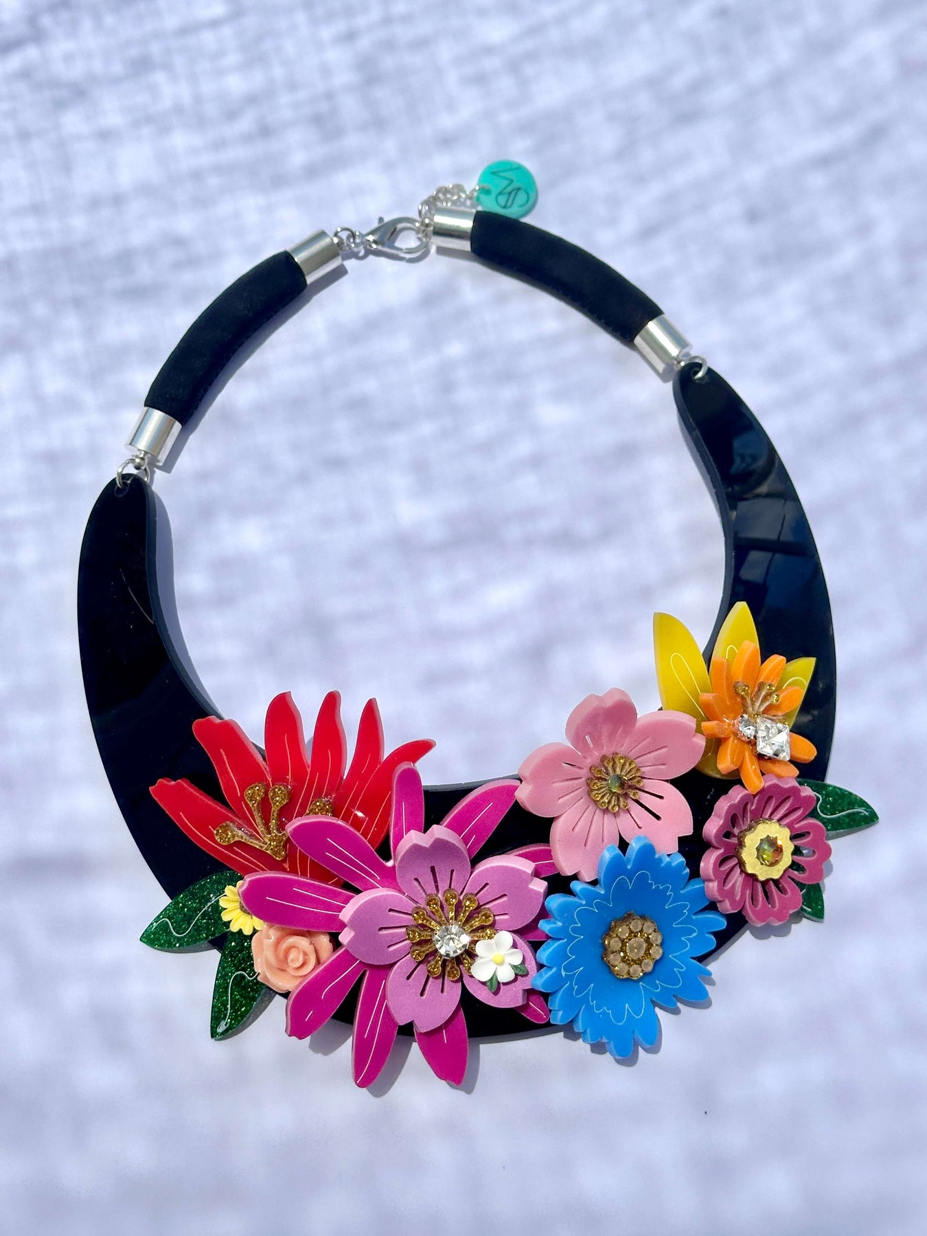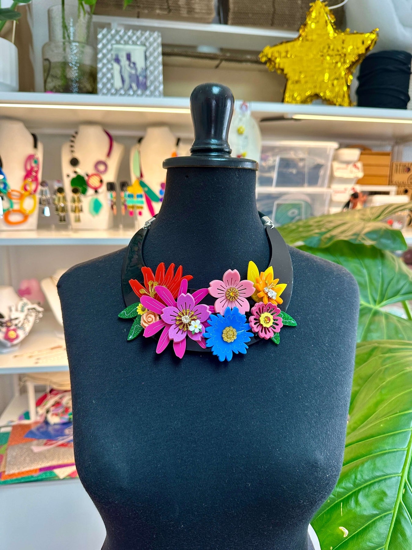 Collar de Acrílico y cuerda de algodón forrada de Dupont.