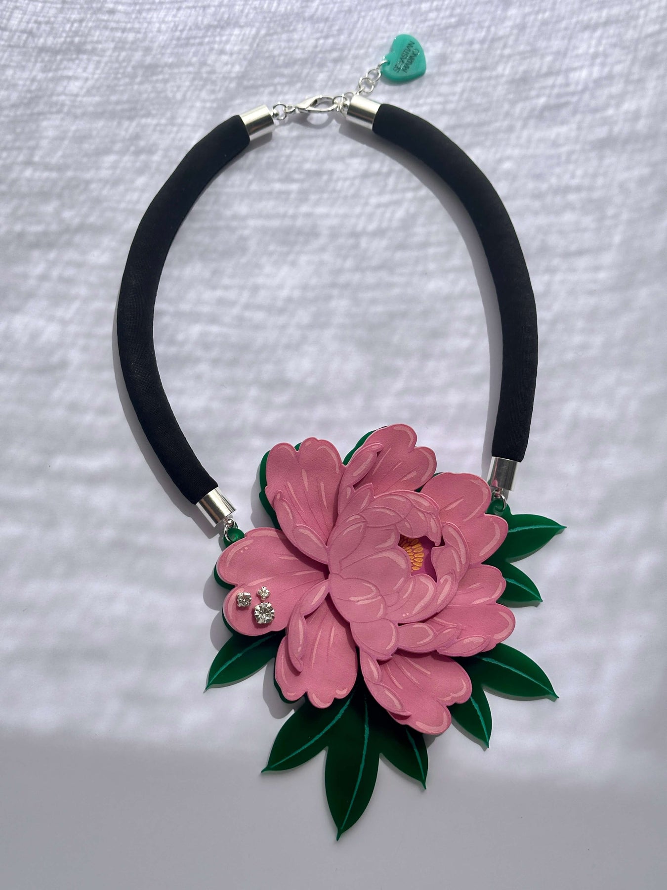 Collar de Acrílico pintado a mano y cuerda de algodón forrada de Dupont.