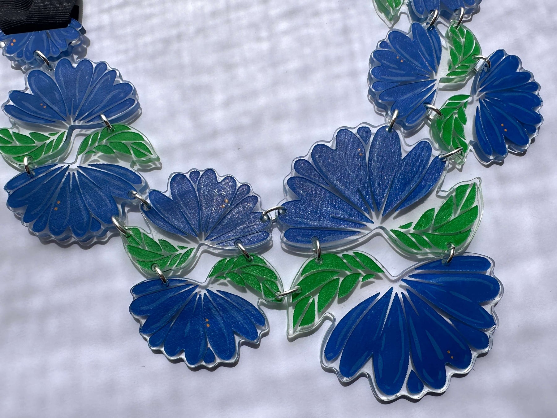 Collar de Acrílico pintado completamente a mano y cinta falla. Largo regulable