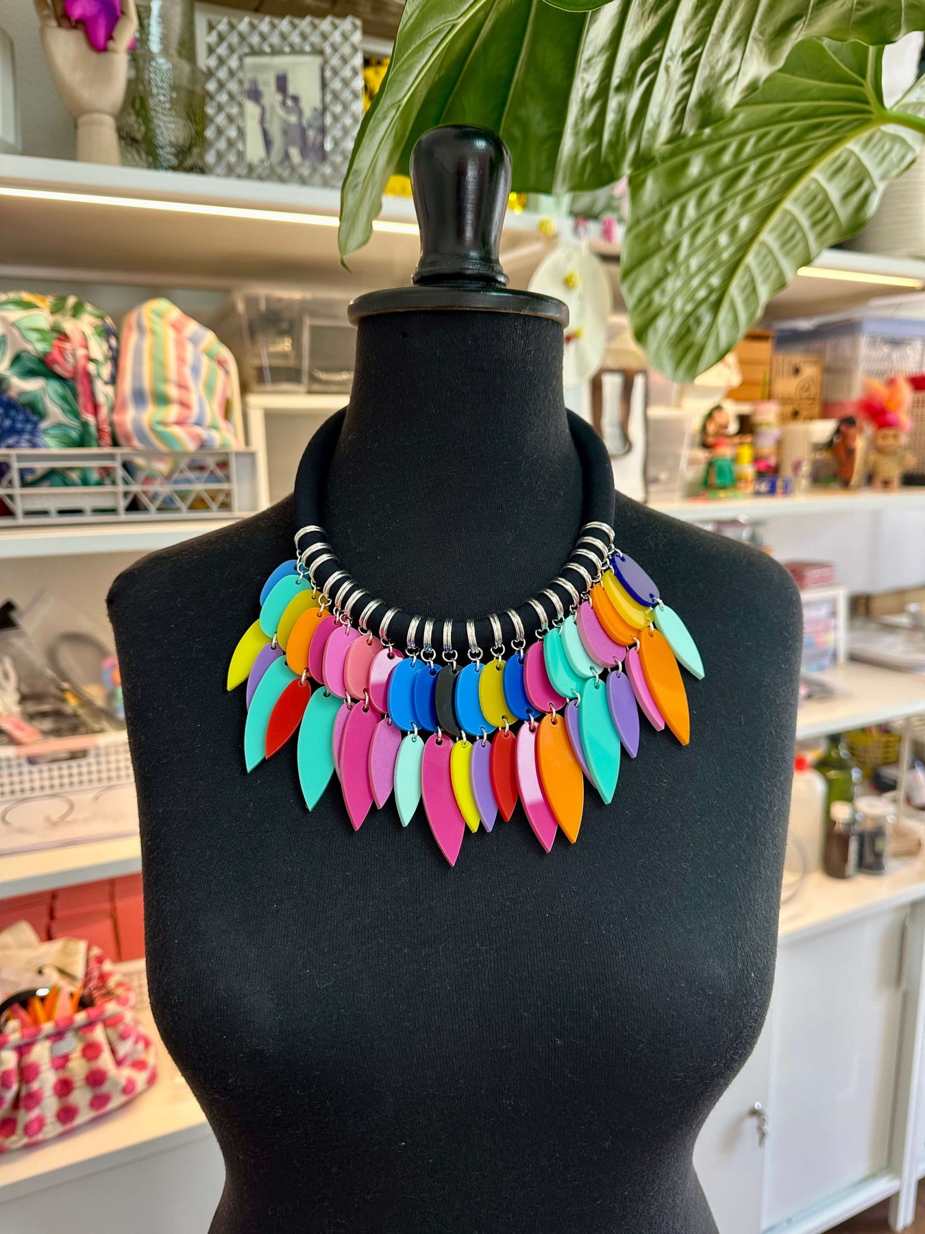 Collar de Acrílico y cuerda de algodón forrada de Dupont.