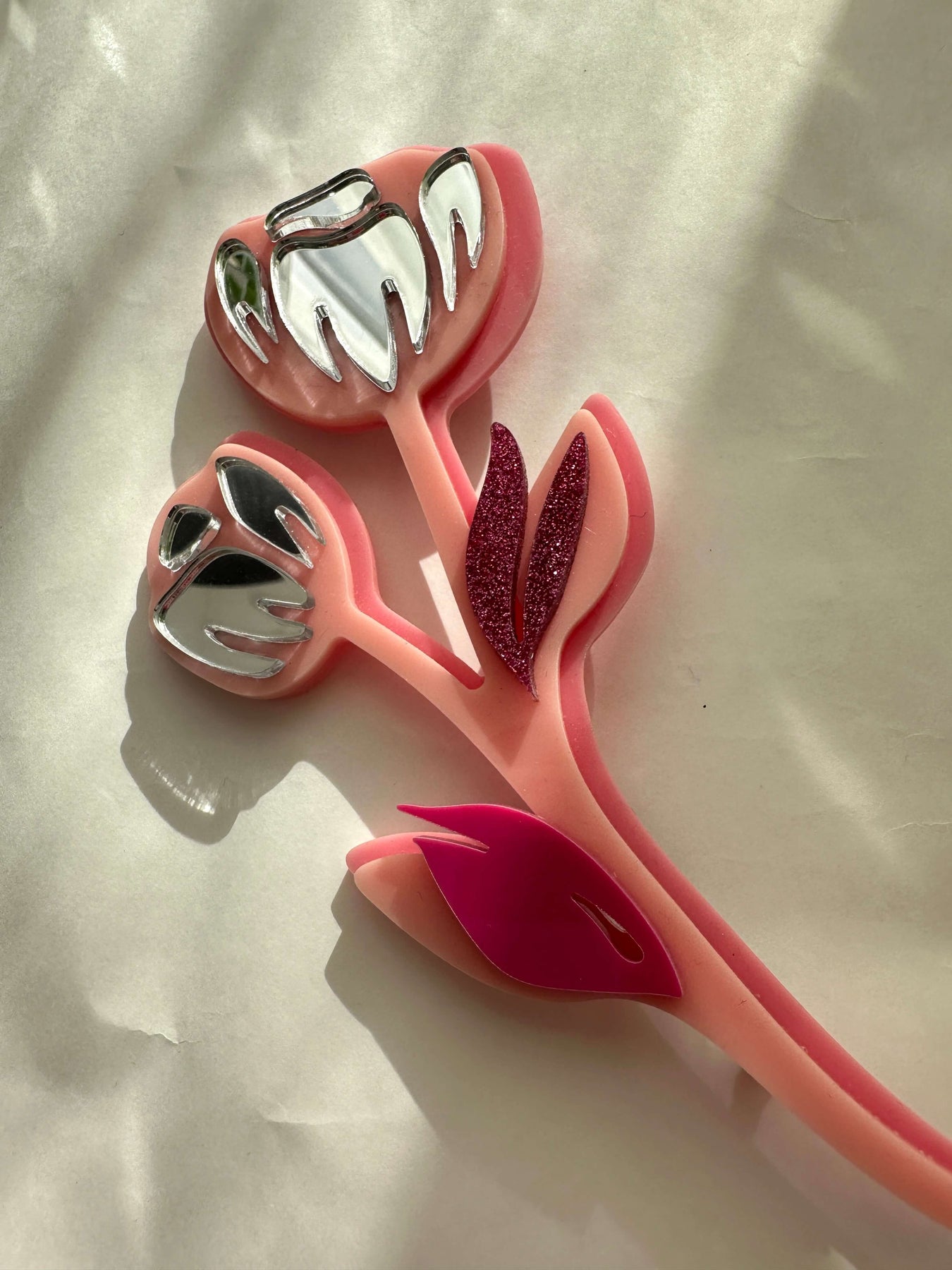 Prendedor de acrílico, diseñado para usar en abrigos o chaquetas de telas gruesas; como lanas o de abrigo