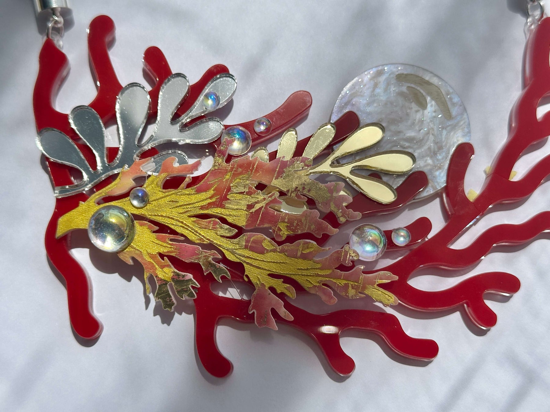 Collar de Acrílico pintado a mano y cuerda de algodón forrada de Dupont.